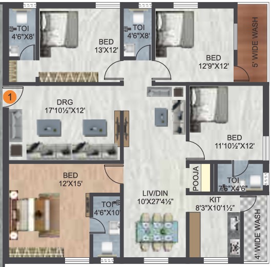 • 3 BHK Type 1